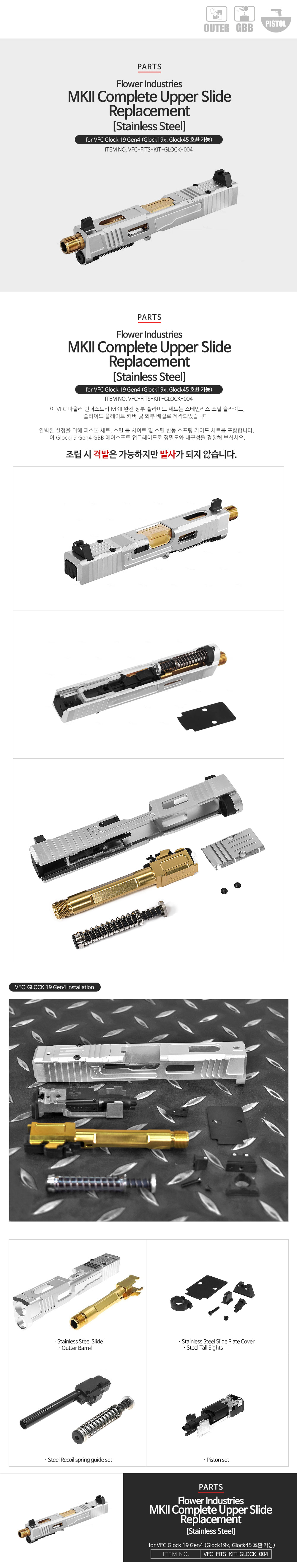 Flower Industries VFC Glock19 Gen4 MKII Complete Upper Slide Replacement [Stainless Steel]