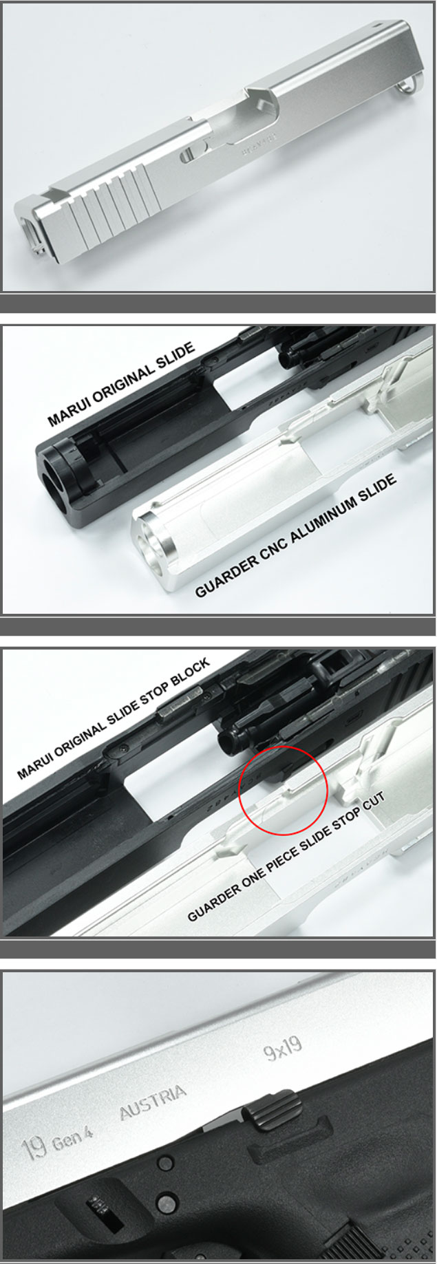 °¡´õÞä Aluminum CNC Slide for MARUI G19 Gen4 (Silver)