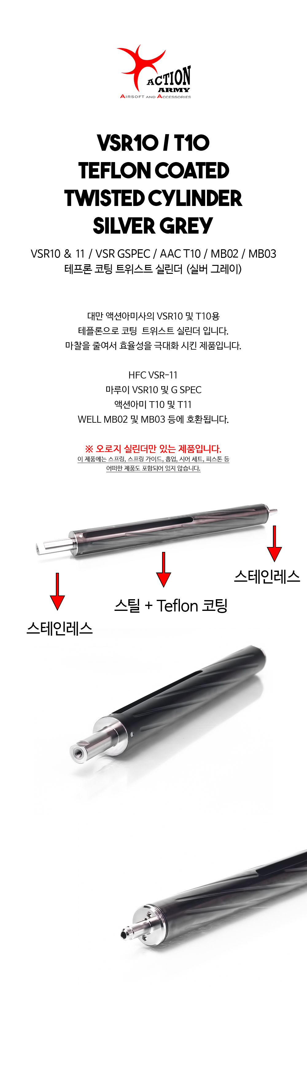 Teflon Coated Twisted Cylinder Silver Grey / VSR10,11,AAC10