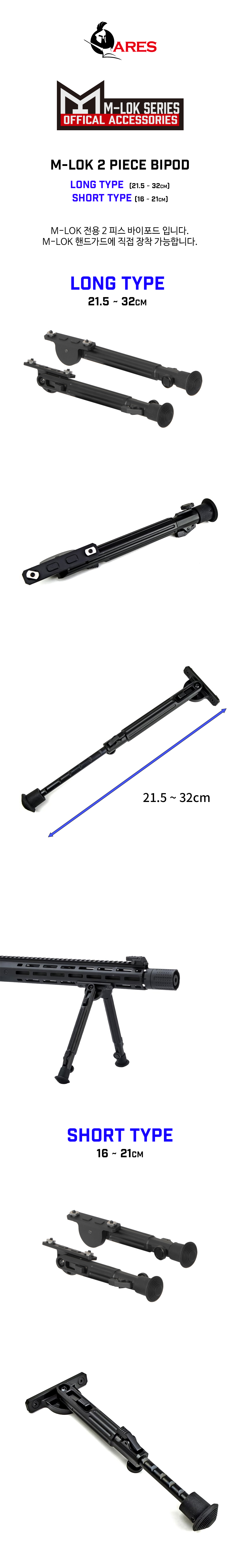 M-Lok 2 Piece Bipod short