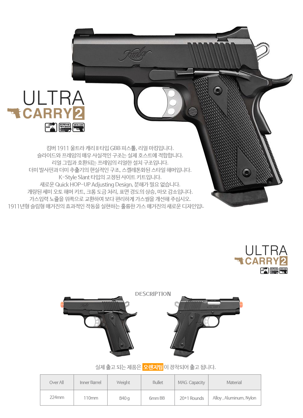 VFC KIMBER 1911 Ultra Carry2 GBB ÇÚµå°Ç